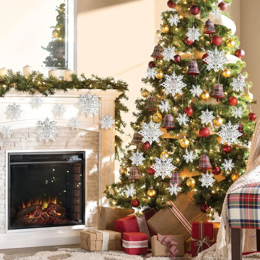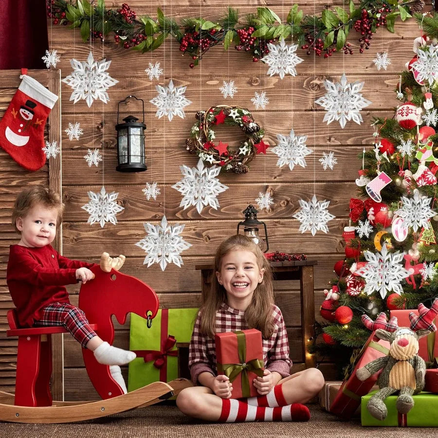 24PCS Snowflake Christmas Decorations 3D Large Silver Paper Snowflakes Garland Hanging Snow Flakes for Winter Wonderland Christ