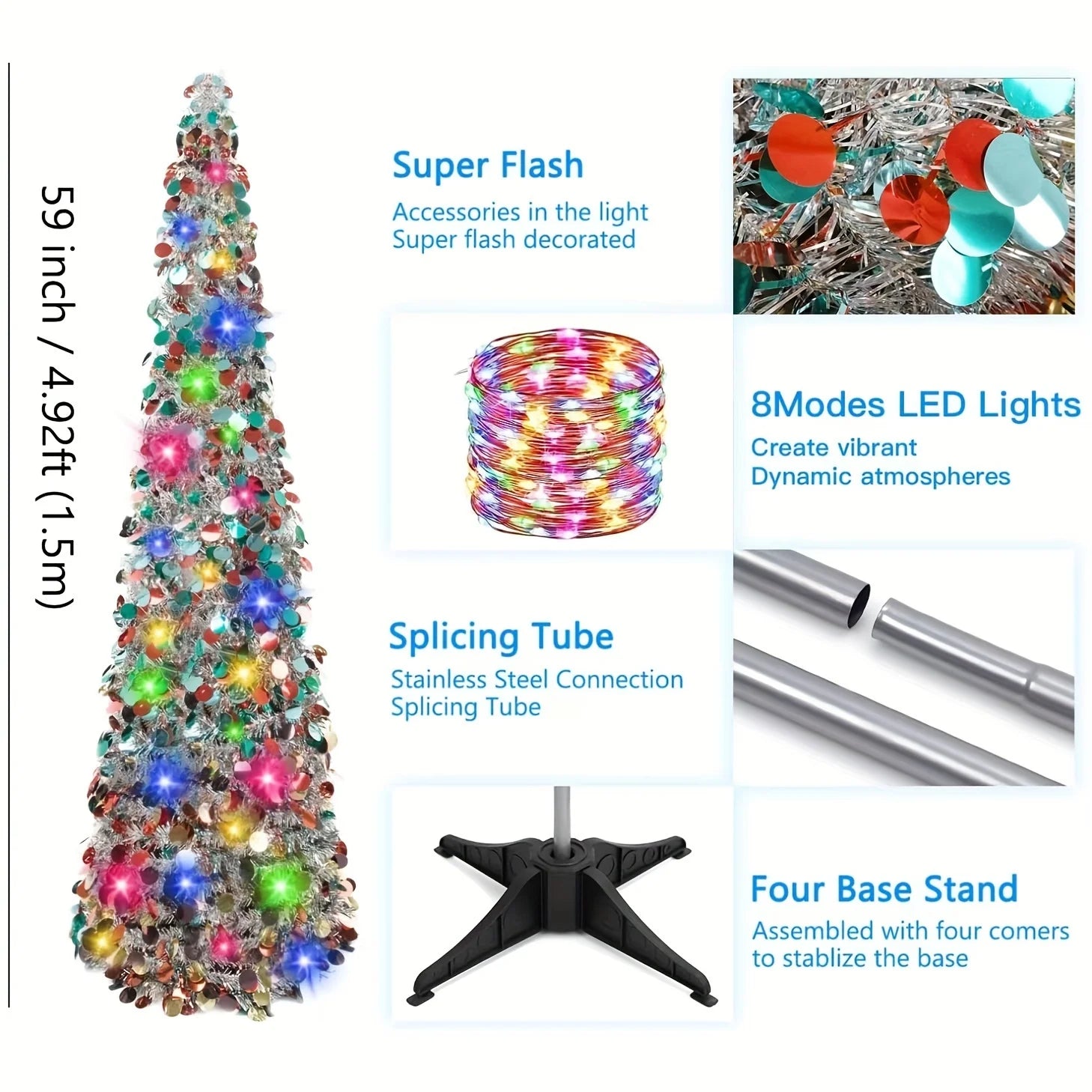5ft Pop-up Christmas Light Tree, Easy to Assemble Coastal Shining Colorful Christmas Pencil Tree,