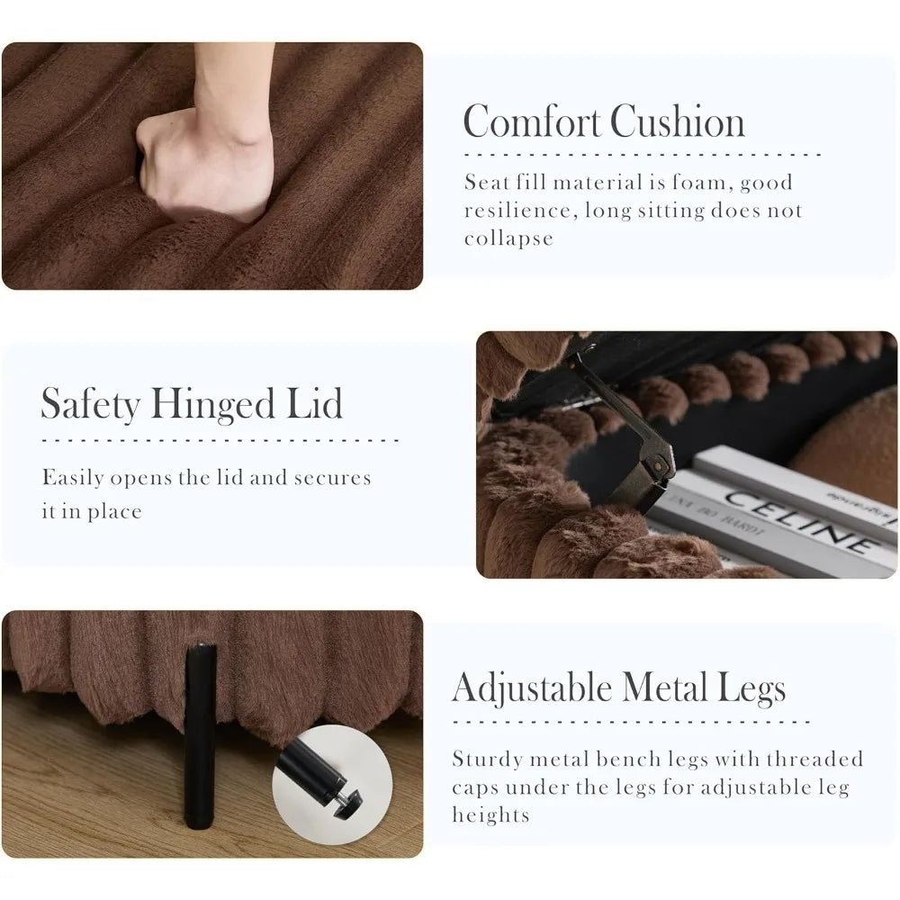 Aoiy & Wifon 49.2" W Storage Ottoman Bench, Upholstered End of Bed Storage Bench with Metal Legs for Bedroom