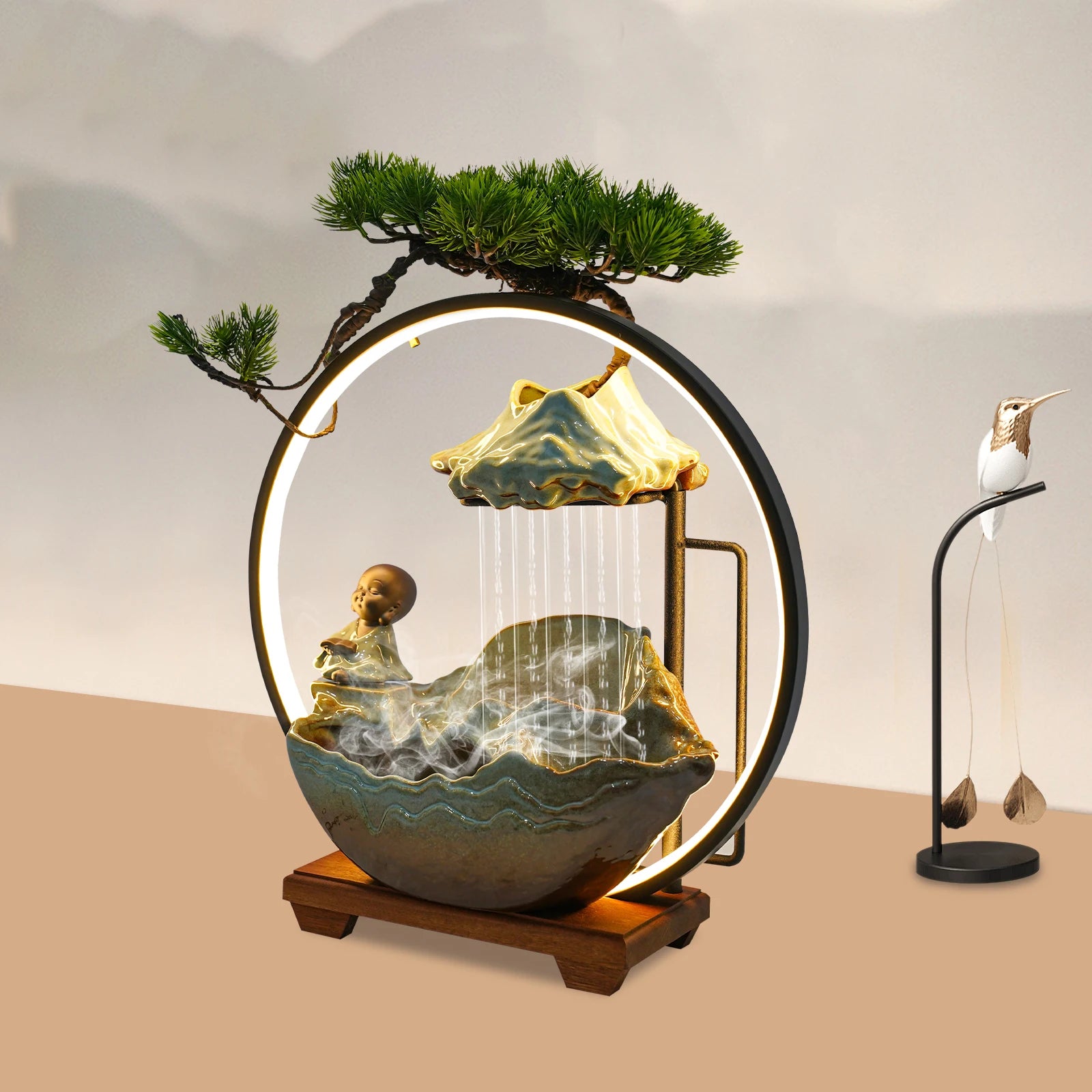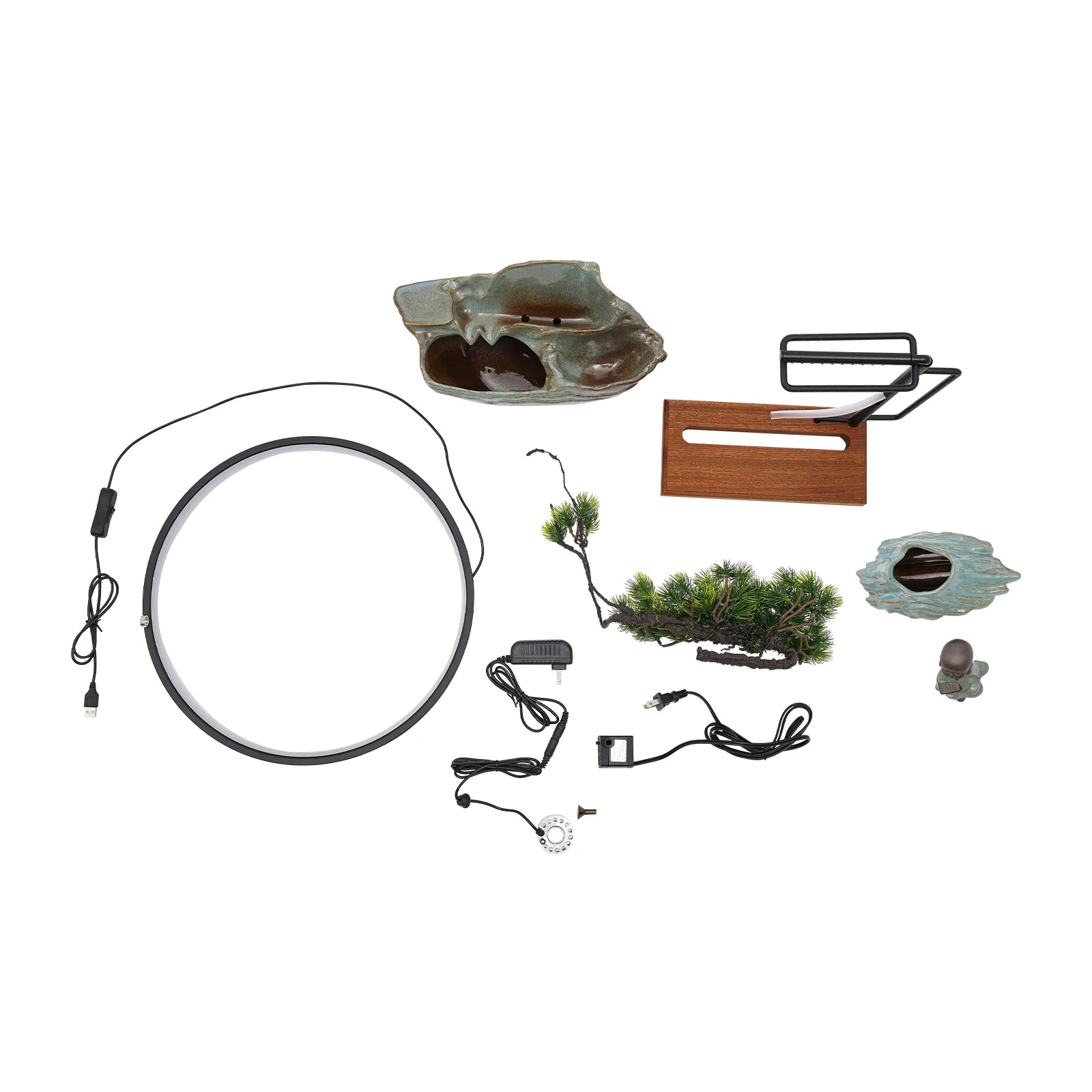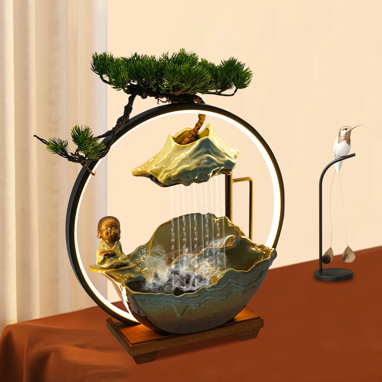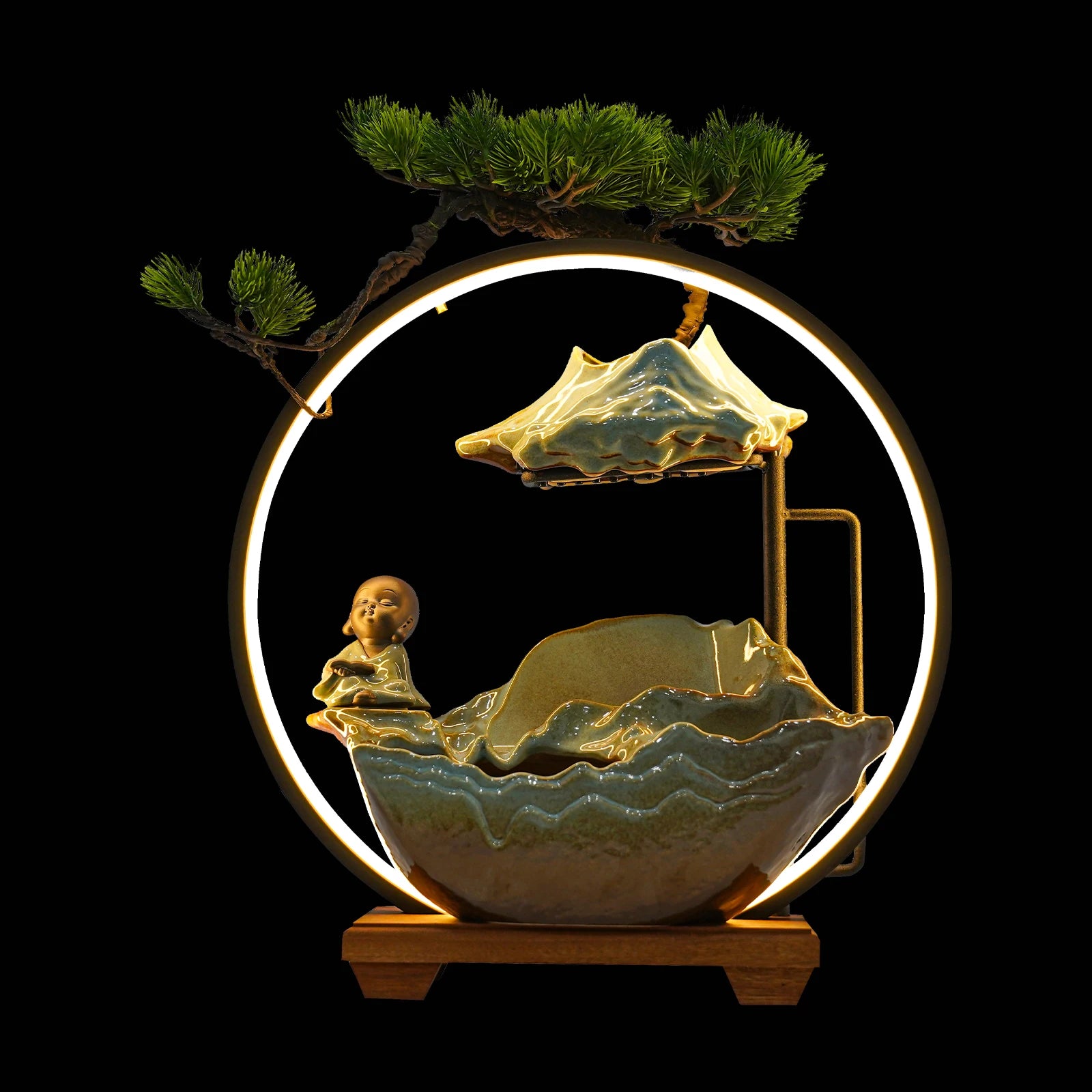 DC 24V Feng Shui Tabletop Water Fountain Indoor Waterfall with LED Mist Desk Fountain