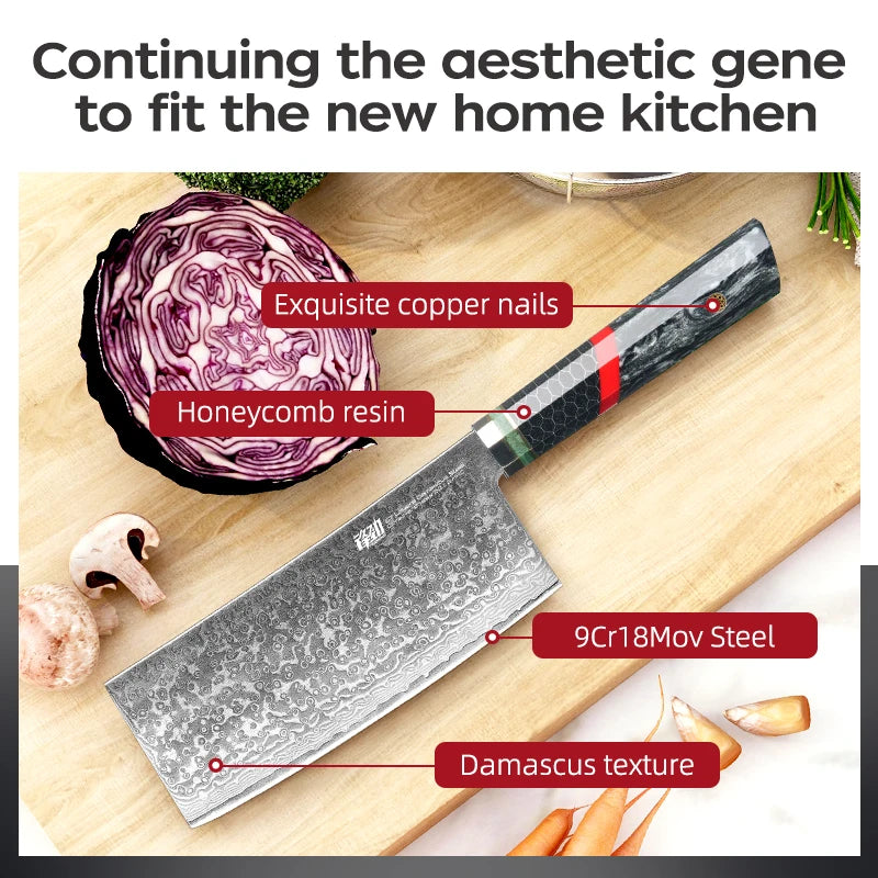 FINDKING 6.5 inch Cleaver Knife Damascus Steel