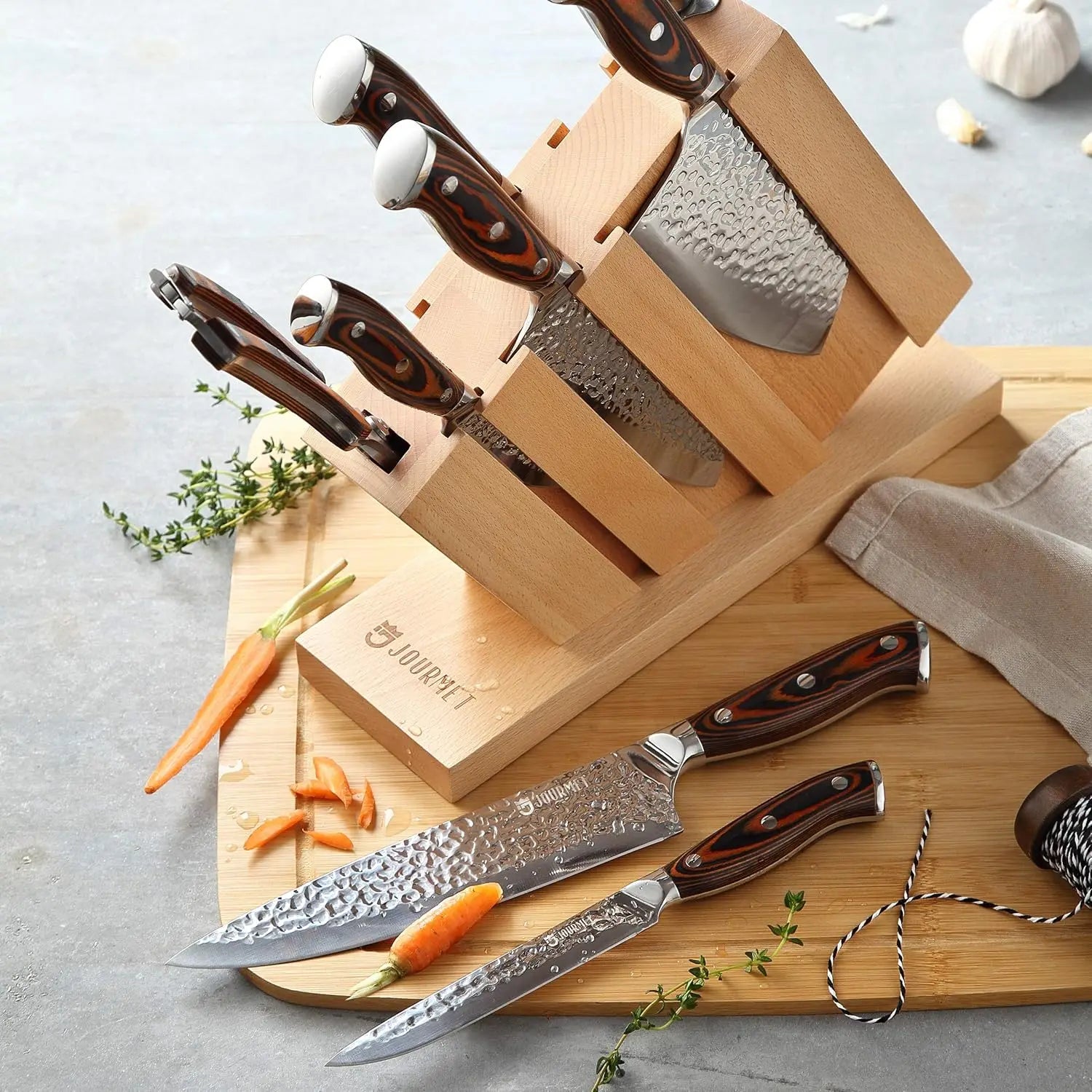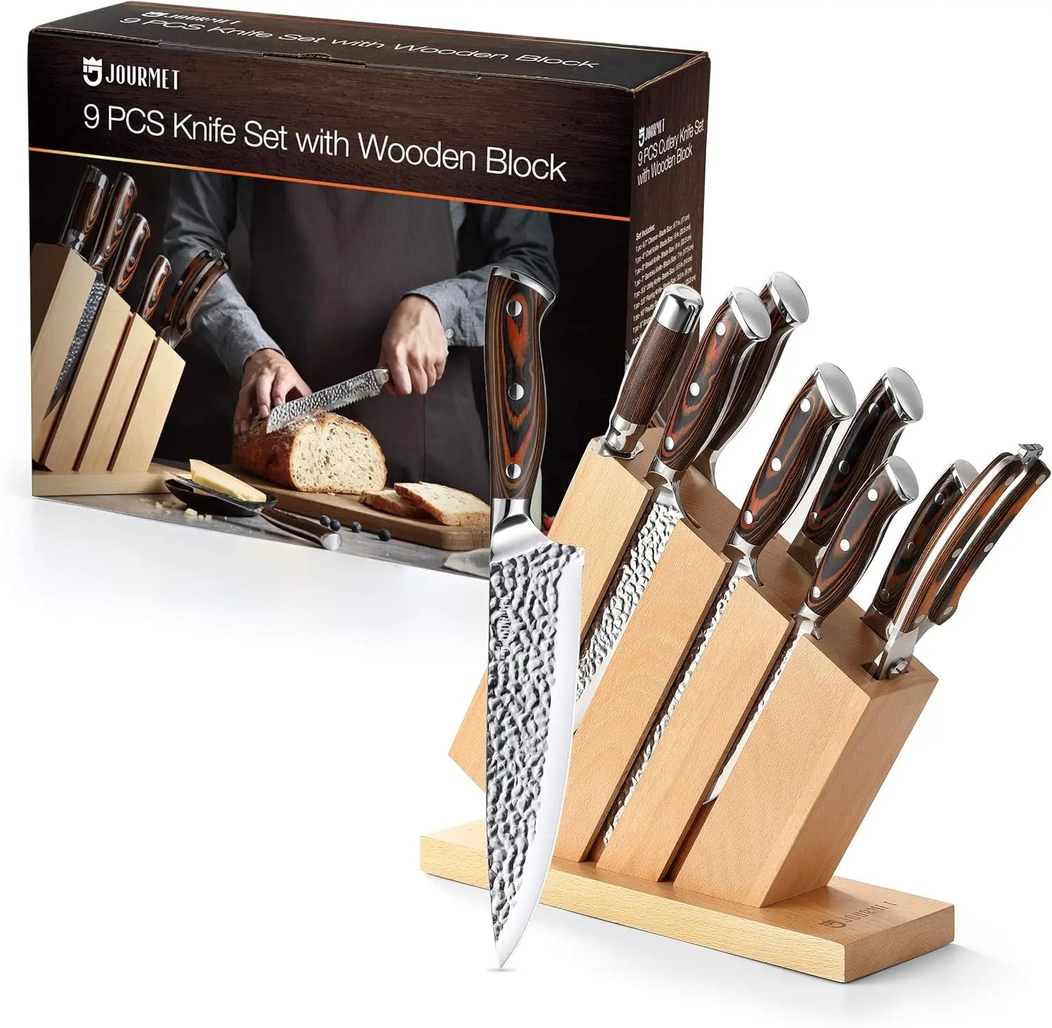 Knife Set with block, 9PC High Carbon Stainless Steel Knife Set with Pakka Wood Handle and Beech Wood Block