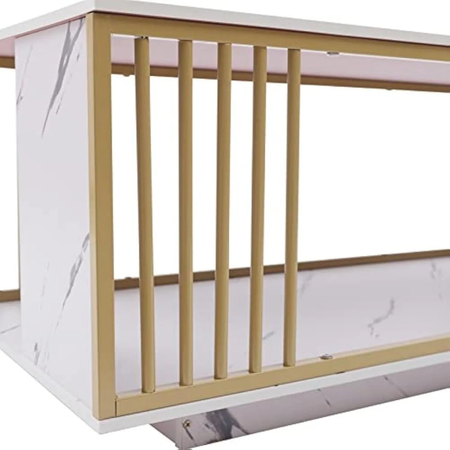 Modern White Marble Veneer Coffee Table, 2 Tier Rectangular Coffee Table with Gold Frame Sofa End Table for Living Room Bedroom