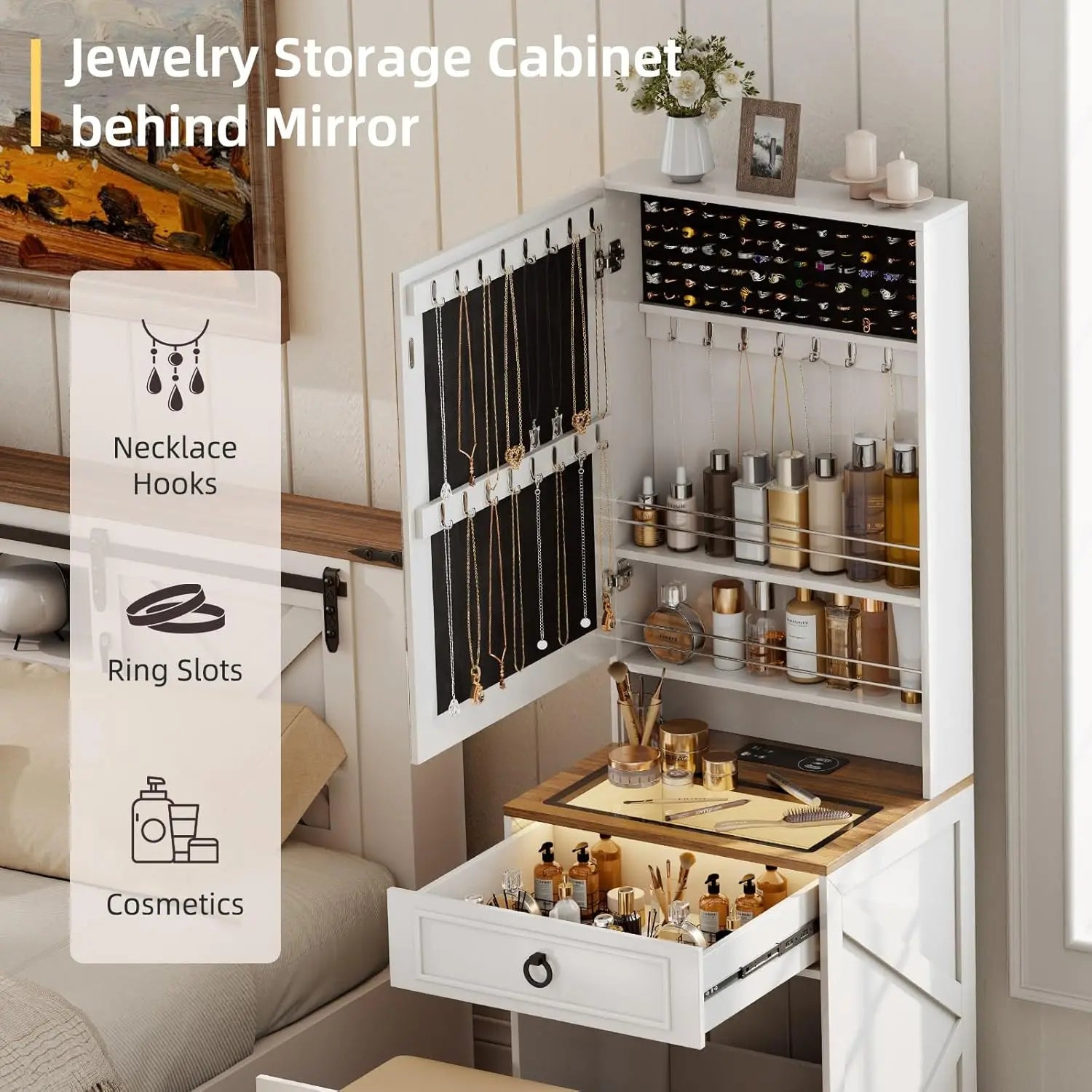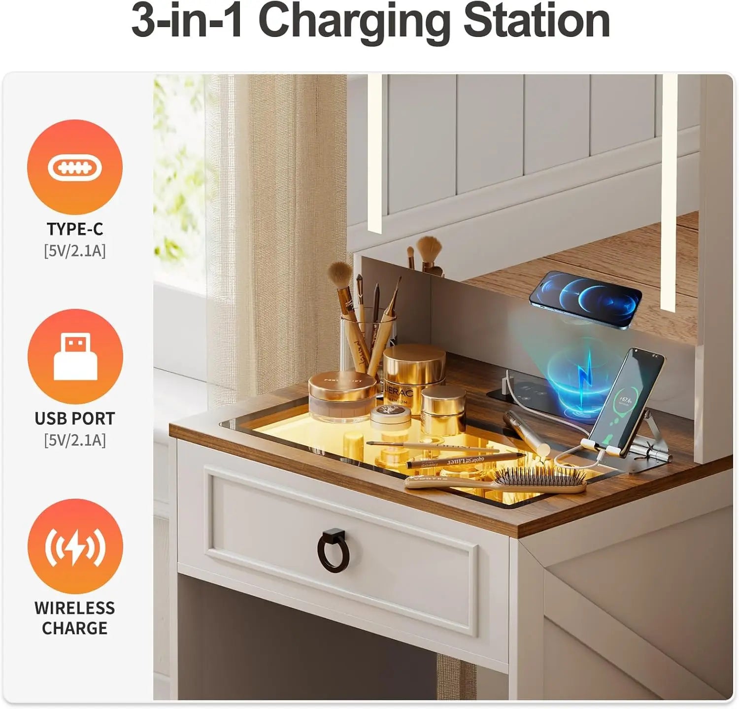 NEW Makeup Vanity Desk with Mirror and Lights,Small Vanity Desk Set with Charging Station,Compact Dressing Table, White