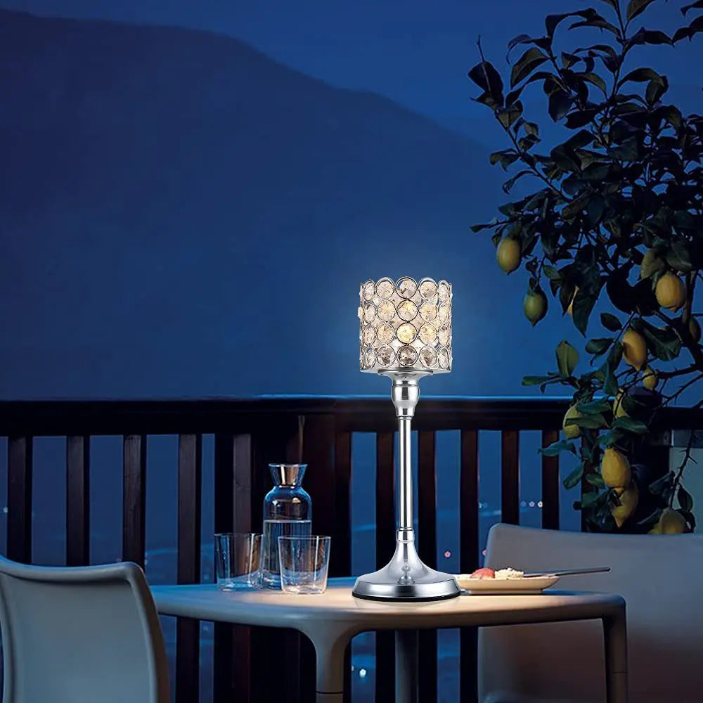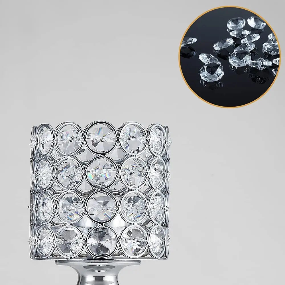 Silver Crystal Cylinder Candle Holders, Pillar Candlestick Holders for Living Room, Wedding, Dining Table, Centerpieces, 1PCS